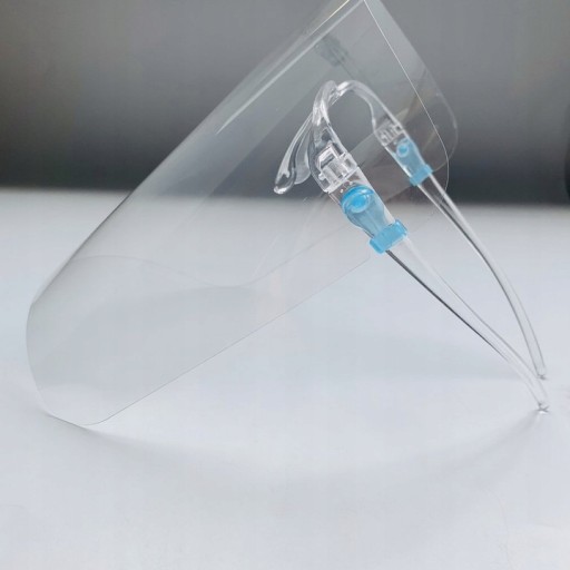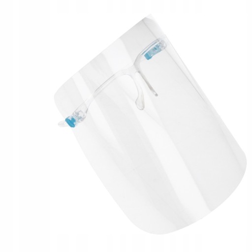 Solidna przyłbica okularowa, część ochronna wykonana z bezbarwnego poliwęglanu grubości 0,75 mm. Idealna widoczność, szeroki kąt widzenia, ergonomiczna wygodna osłona twarzy, lekka, nie krępuje ruchów, zapewnia wygodną i higieniczną prace lekarzom stomatologom, protetykom, technikom.