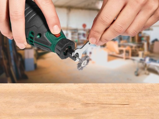 - Cechy szczególne: przydatne narzędzie do wiercenia, frezowania, szlifowania, polerowania, czyszczenia, cięcia i grawerowania, wytrzymały silnik z płynną regulacją obrotów