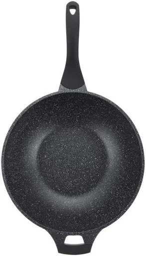 Wok firmy Royalty Line RL-BW30ML ma średnicę 32 cm i pojemność 5,9 litra, przeznaczony jest więc do większych porcji. Zachowując kształt i właściwości pierwotnych chińskich woków, jest on jednocześnie przystosowany do europejskich przyzwyczajeń - ma płaskie dno, dostosowane do kuchenek zarówno indukcyjnych, jak i gazowych, elektrycznych i ceramicznych. Wykonany z aluminium, pokrytego powłoką marmurową oraz greblonem - nieprzywierającą warstwą trwalszą i bezpieczniejszą niż teflon, jest solidny i bezpieczny, a jednocześnie nie tak ciężki jak woki żeliwne.