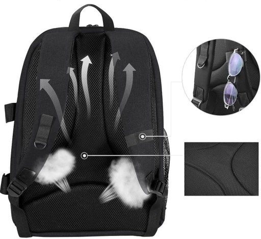 Wielofunkcyjne kieszenie: Główna komora jest wyposażona w różnorodne kieszenie: na aparat, notebooka, tablet, telefon, magazyn czy ubrania. Dodatkowe miejsce na okulary, małe przedmioty, butelkę z wodą i wiele innych.