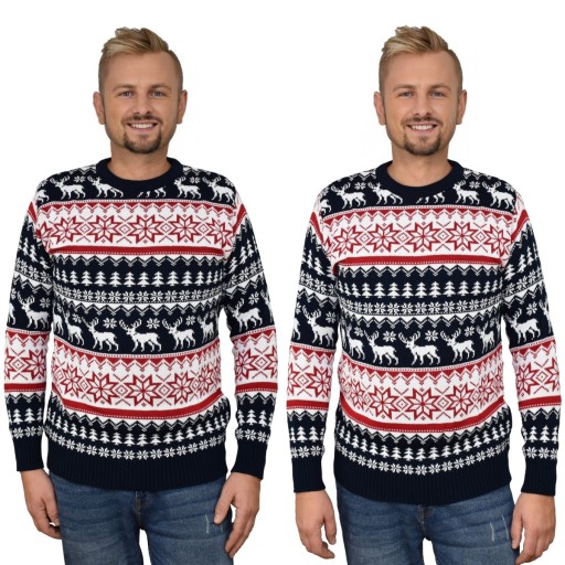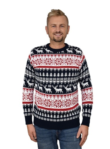 SWETER ŚWIĄTECZNY W GRANATOWO-CZERWONY WZÓR NORWESKI