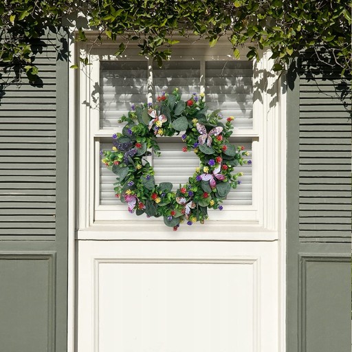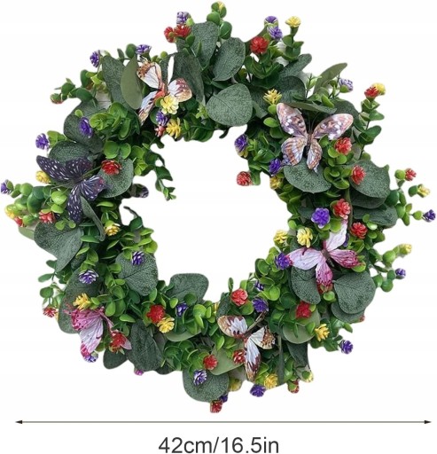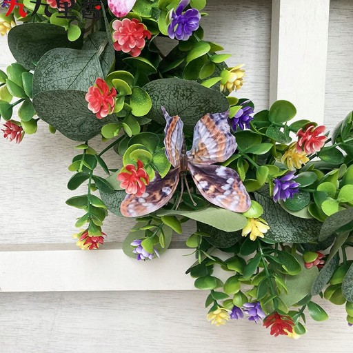 [Wieniec sezonowy] -- Sztuczny wieniec jest pełen kolorowych kwiatów, naturalnych i świeżych kolorów, a motyle latają na nim żywe i żywe, pełne witalności, dodając wiosennego smaku Twojemu domowi.