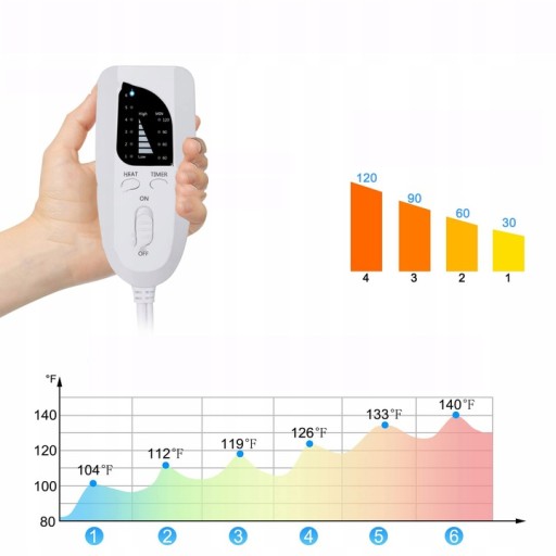 6 regulowanych temperatur: Nasz podgrzewacz do stóp może szybko ogrzać koc elektryczny dzięki 6 regulowanym ustawieniom kontroli temperatury (40-60°C). Można ustawić według potrzeb, zintegrowane szybkie ogrzewanie zapewnia ciepło w mgnieniu oka. Ogrzewacz do stóp może obniżyć koszty. Utrzymuje ciepło w sposób przyjazny dla środowiska i sprawia, że ogrzewanie całego pomieszczenia nie jest konieczne. Może oszczędzać ogrzewanie lub energię elektryczną.