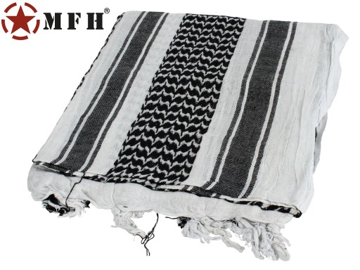 CHUSTA ARAFATKA OCHRONNA BANDANA BANDAMA Shemagh 110X110 MFH BLACK WHITE [16503A]