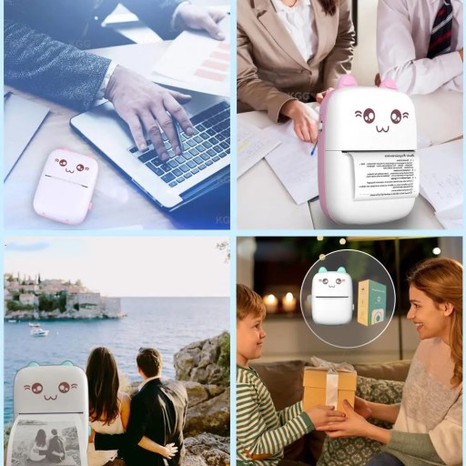 ✅Drukuś drukarka termiczna mini kot + 11szt rolek GRATIS