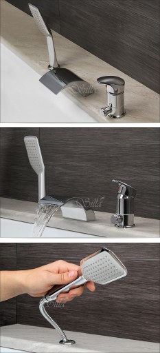 Смеситель для ванны на 3 отверстия, хромированный каскад