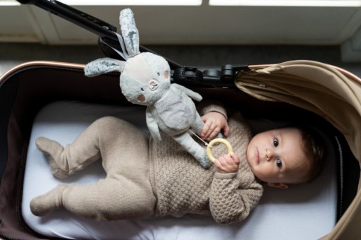 - Łatwo mocuje się do większości łóżeczek, wózków i fotelików samochodowych.