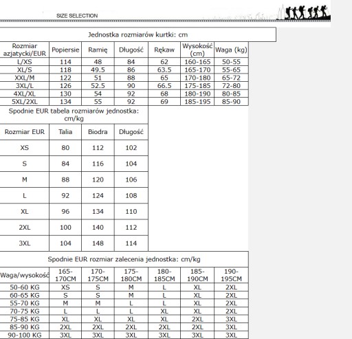 3. lista pakietów: 1szt kurtki + 1szt spodni.