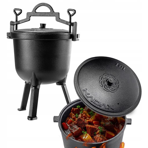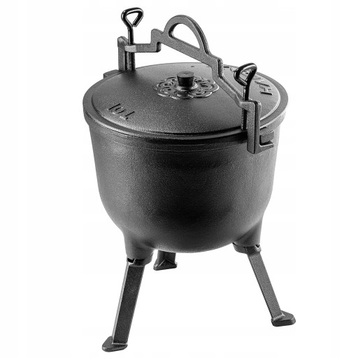 ЧУГУННЫЙ ОХОТНИЧИЙ КОЛДЕЛ 10 Л КОСТРОВАЯ ГОРШКА-ГРИЛЬ ДЛЯ ЗАПЕЧКИ