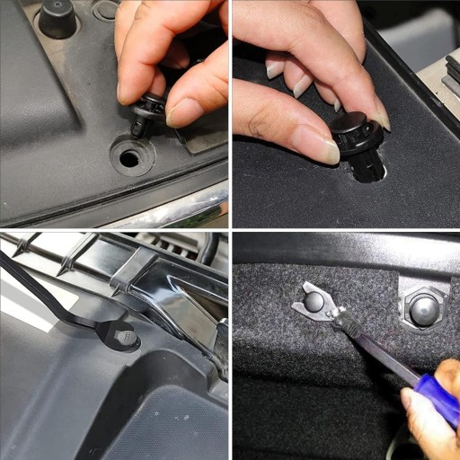 Spinki samochodowe zostały wykonane z solidnego, mocnego tworzywa sztucznego, pasujących do większości modeli aut osobowych oraz dostawczych. Trwale mocują różnego rodzaju elementy.