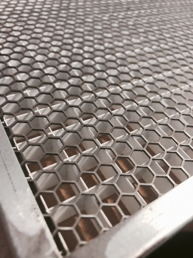 Materiał: ramka ze stali ocynkowanej, stalowa blacha perforowana oraz aluminiowa kratownica.