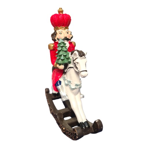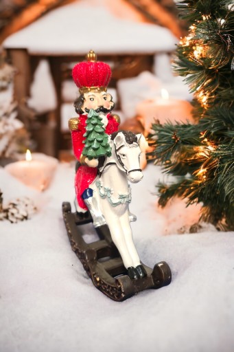 Przedstawiamy Państwu wyjątkowy produkt - Dziadek do orzechów na koniu na biegunach czerwony z choinką w dłoni. Zaprojektowany z dbałością o detal.