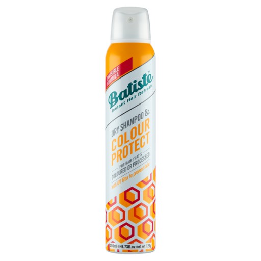 Suchy szampon do włosów farbowanych, niewidoczna formuła z filtrem UV Colour Protect to suchy szampon do włosów farbowanych i zniszczonych, z filtrem UV. Lekka i niewidoczna formuła błyskawicznie odświeży włosy, a przy tym zadba o intensywność ich koloru, zapobiegając blaknięciu aż do 37%! Szampon pielęgnuje włosy dzięki dodatkowi olejku abisyńskiego, tamanu oraz keratyny.