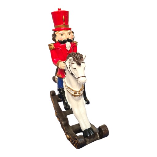 Dodaj odrobinę baśniowej atmosfery do swojego domu dzięki temu uroczemu Dziadkowi do orzechów na koniu na biegunach. Ciesz się świątecznymi chwilami.