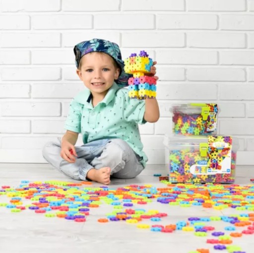 Tylko od wyobraźni dziecka zależy, w jaki kształt zamienią się podobne do puzzli płaskie elementy, łatwe w łączeniu jak i w demontażu.
