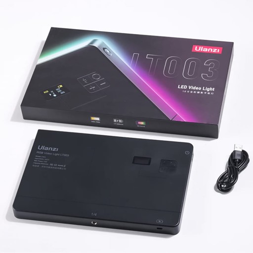 Lampa Ulanzi LT003 to lekki, prostokątny panel złożony z 266 diod LED – 70 odpowiadających za emisję światła ciepłego, kolejnych 70 odpowiadających za światło zimne oraz 126 diod RGB. Urządzenie umożliwia regulację temperatury barwowej w trybie CCT od 2500 do 9000 K oraz płynną zmianę jego mocy od 1 do 100%. Emituje również światło o dowolnej barwie z palety kolorów RGB oraz oferuje aż 20 zaprogramowanych efektów tematycznych. Współczynnik CRI ≥ 95 gwarantuje wierne odwzorowanie naturalnych kolorów.