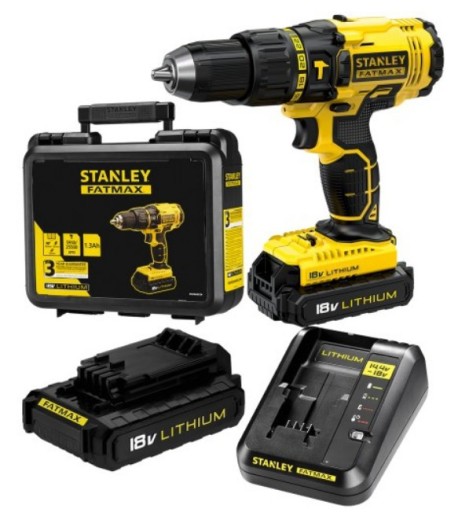 - Wiertarko-wkrętarka STANLEY FATMAX 18 V dostarczana z dwoma akumulatorami Li-Ion o pojemności 2.0 Ah