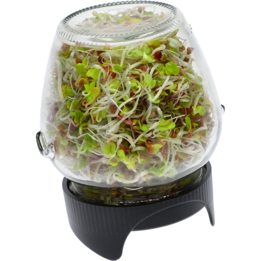 Szklany, przezroczysty klosz pozwala na łatwą kontrolę wzrostu nasion. Materiał jest również higieniczny, trwały i bezpieczny. Mycie kiełkownicy nie stanowi problemu
