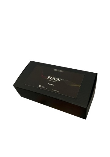 Foen Test Box jest zapakowany w eleganckie pudełko, które nie tylko zapewnia ochronę testerów, ale również stanowi piękną ozdobę dla każdego wnętrza.