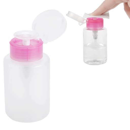 Doskonałej jakości dozownik z pompką do wszelkich płynów kosmetycznych (aceton, cleaner, zmywacz) o pojemności 150 ml.