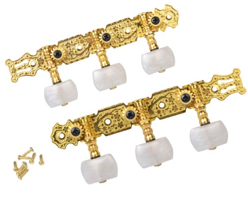 Komplet kluczy do gitary klasycznej. Wykonane z solidnego materiału oferują gwarancję poprawnego działania. Dzięki kluczom, strojenie jest łatwe a naciąg strun niezmienny co skutkuje trwałą intonacją. Idealne jako cześć zamienna do prostych i tanich instrumentów. Świetny stosunek ceny do jakości