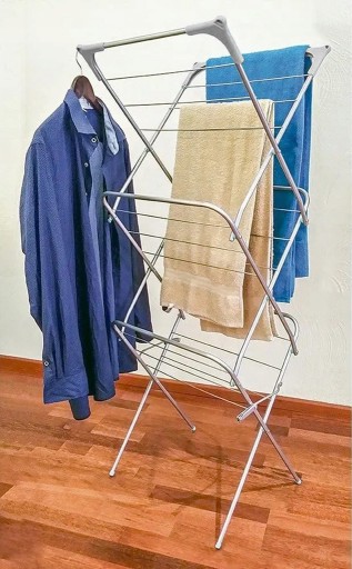 Wolnostojąca suszarka pionowa nie tylko zapewni dużo miejsca na Twoje ubrania - posiada 6 rozkładanych skrzydeł / na każdym 3 pręty, ale również pozwoli na zaoszczędzenie cennej przestrzeni Twojego mieszkania.