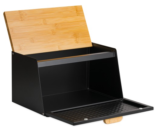 DUŻY CHLEBAK METALOWY Z DESKĄ POJEMNIK NA PIECZYWO CHLEB CZARNY BAMBUSOWY
