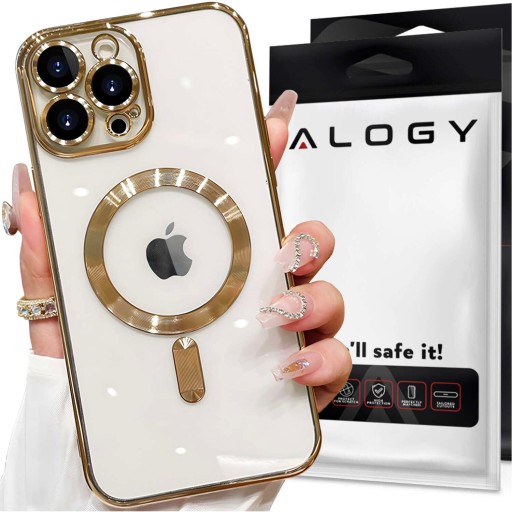 ▶️ Etui mag safe Case do iPhone 15 Pro Glamour Luxury obudowa Slim Ring Alogy Złote przezroczyste