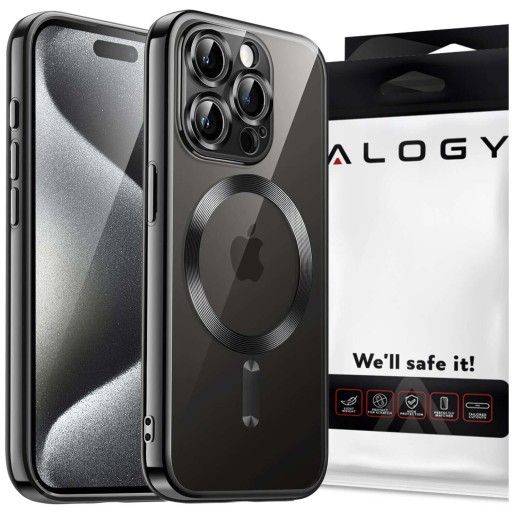 ▶️ Etui mag safe Case do iPhone 15 Pro Glamour Luxury obudowa Slim Ring Alogy Czarne przezroczyste