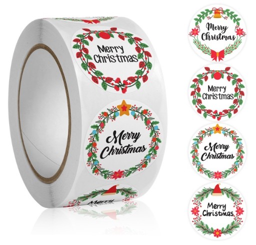 КРУГЛЫЕ РОЖДЕСТВЕНСКИЕ НАКЛЕЙКИ 50шт. С РОЖДЕСТВОМ ПРАЗДНИКИ С РОЖДЕСТВОМ