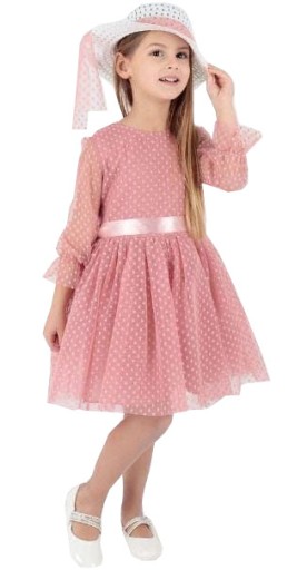 ЭЛЕГАНТНОЕ ПЛАТЬЕ ТЮЛЕВАЯ ШАПКА розовое 8/9 H110B