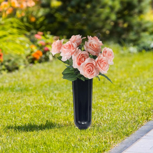 w naziemnym wazonie cmentarnym z uchwytem na kwiaty do ogrodu na zewnątrz cmentarnego czarnego
