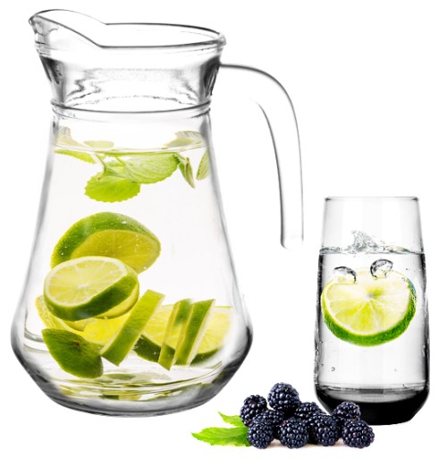 Dzbanek do napojów został wykonany z najwyższej jakości grubego szkła, które jest niezwykle higieniczne oraz trwałe. Atrybut został wyposażony w poręczny uchwyt, który zapewni pewny oraz komfortowy chwyt w trakcie użytkowania oraz wyprofilowany dzióbek, który zabezpiecza zawartość w trakcie przelewania przed niespodziewanym rozpryskiwaniem na boki.