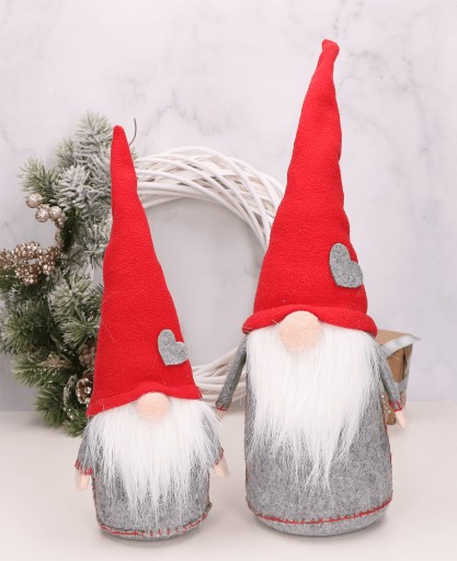- Uroczy skrzat w czerwonej czapce z serduszkiem, szarym zarostem miękkim w dotyku to świąteczna magia w Twoim domu.