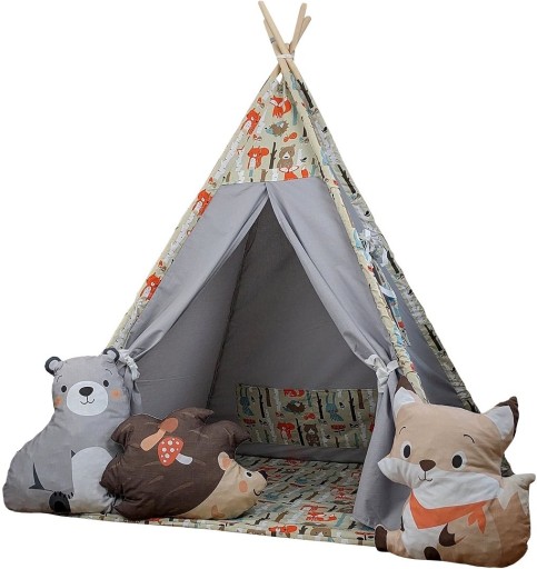 TIPI BAJKOWY LAS NAMIOT TEEPEE Z MATĄ + 3 PODUSZKI PRZYTULANKI