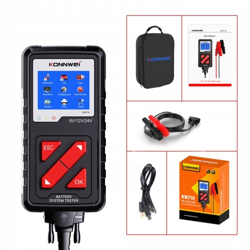 KONNWEI KW710 ТЕСТЕР АККУМУЛЯТОРА ПОЛЬСКОЕ МЕНЮ 6 В 12 В 36 В CE