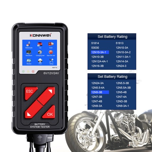 KW710 6V/12V/24V Tester akumulatora motocykla/samochodu/ciężarówki z drukarką