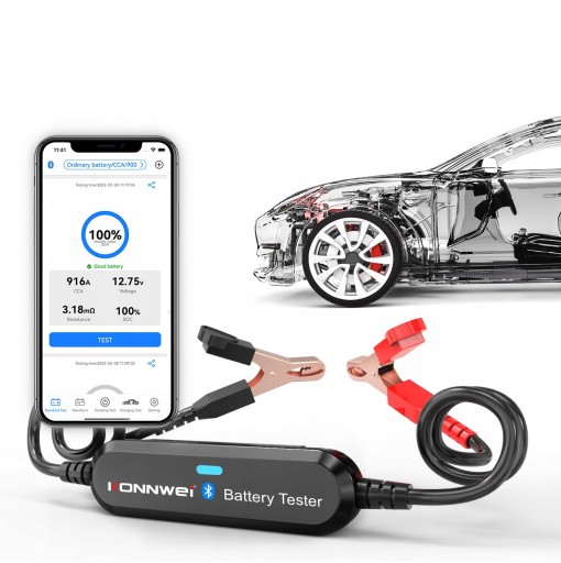 - Za pomocą samochodowego testera akumulatorów KONNWEI BK100 możemy sprawdzić ogólny stan akumulatora, w tym test rozruchu i przeprowadzić pełny test ładowania systemu.