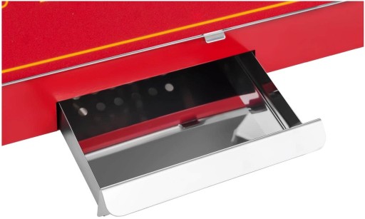 Maszyna do popcornu oferuje wysoką jakość wykonania z trwałych materiałów zapewniających długie użytkowanie. Obudowa z powlekanej stali i aluminiowymi poprzeczkami jest tak samo wytrzymała jak panele ze szkła hartowanego. Dzięki magnetycznym zamknięciom z łatwością otworzysz i zamkniesz drzwi, a także bez problemu wyjmiesz popcorn przez klapkę do serwowania. Otwory w dolnej płycie zapewnią, że nieuprażone ziarna lub nadmiar oleju trafią do tacki pod spodem. Zarówno tackę, jak i garnek wyjmiesz w celu łatwego czyszczenia.