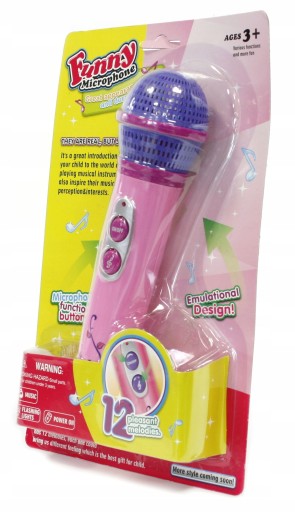 Różowy mikrofon dla fanów muzyki. Po włączeniu mikrofonu z głośników zaczynają płynąć wesołe melodie.
