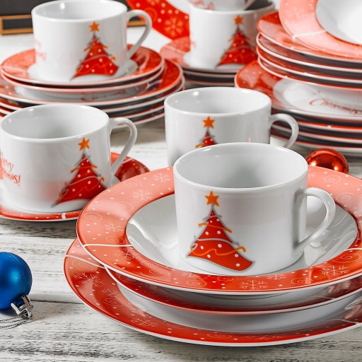 ŚWIĄTECZNY SERWIS OBIADOWY - 30 elementów - WYSOKA JAKOŚĆ