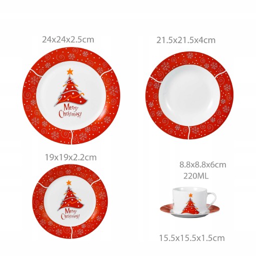 Świąteczny komplet obiadowy jest przeznaczony dla 6 osób.