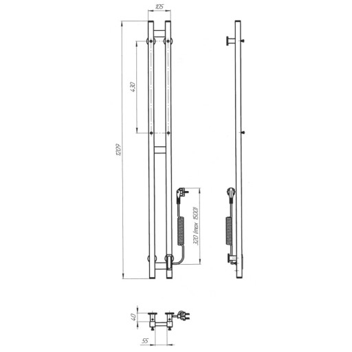 Полотенцесушитель 120х10,5 см 220 В/50 Гц, вертикальный черный
