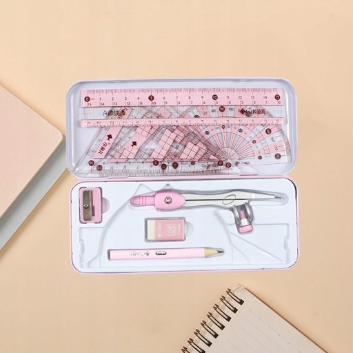 Zestaw Matematyczny Do Geometrii 8 Szt. Materiały Dla Uczniów Kątomierz Do Rysunków Różowy