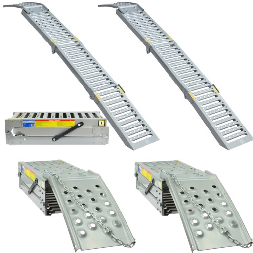 Zestaw ramp GEKO, zawiera dwie składane wytrzymałe rampy do samochodów lub motocykli o szerokości opon do 225 mm. Rampy mają maksymalną ładowność 2,2 tony lub 350 kg każda z osobna jeśli jest używana jako rampa do załadunku. Idealne do użytku z przyczepami, burtami i innymi pojazdami. Zwiększona przyczepność i bezpieczeństwo dzięki perforowanej powierzchni.
