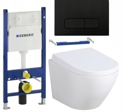 ZESTAW WC STELAŻ GEBERIT UP100 MISKA WC ARBO SLIM RIM PRZYCISK CZARNY MAT