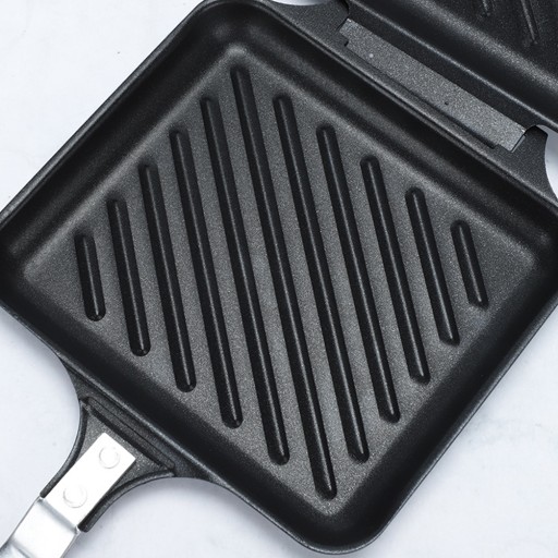 Nasza nieprzywierająca patelnia do kanapek wykonana jest z wysokiej klasy i najwyższej jakości aluminium i może nam służyć przez długi czas. Unikalna dwustronna konstrukcja pozwala nam używać go z obu stron. Sprytna konstrukcja i wysokiej jakości materiały zapewniają jej praktyczność i trwałość. Można go podgrzewać z obu stron, co ułatwia obracanie potraw, a hermetyczne środowisko gotowania blokuje ciepło i zachowuje smak potraw.