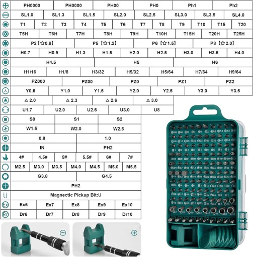- Ten zestaw zawiera 120 wkrętaków z każdym bitem, który jest potrzebny do każdej naprawy lub projektu dla majsterkowiczów.