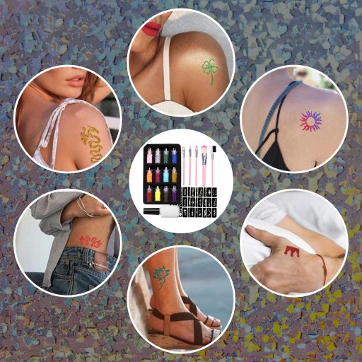 ✔️Blask, Który Zachwyca✔️Ten zestaw pozwoli Ci stworzyć tatuaże, które rozbłysną na Twojej skórze. Brokatowe zdobienia przyciągną spojrzenia i dodadzą blasku każdej okazji.