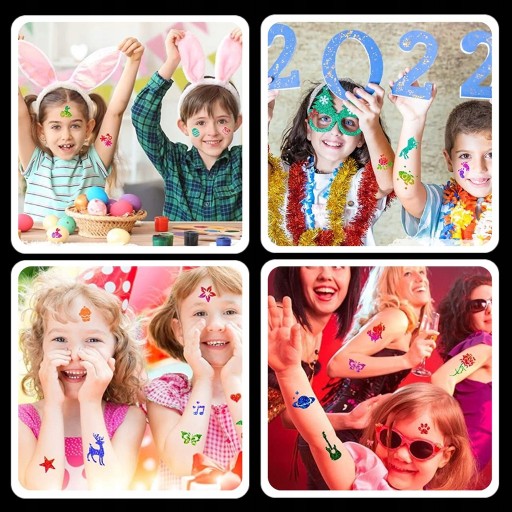 ✅Trwałe i Efektowne Tatuaże: Dzięki kolorowemu brokatowi i trwałym szablonom, tatuaże z tego zestawu zachowają swój blask i efektowny wygląd przez długi czas, dodając uroku każdemu wydarzeniu.